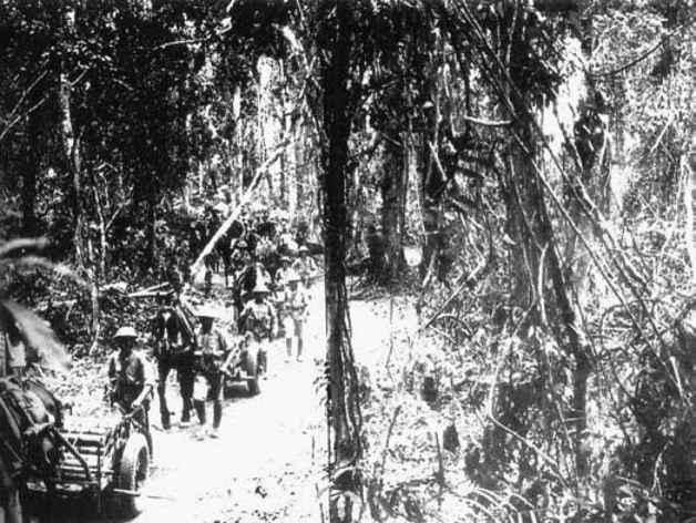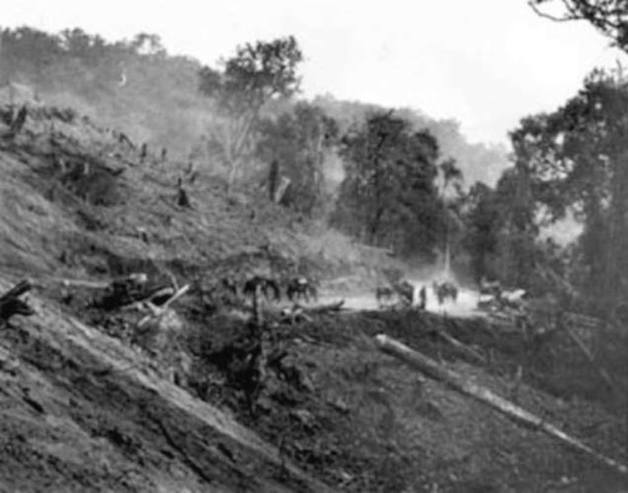 1943年10月,以中国驻印军为主力的中、美、英盟军开始反攻,由印度雷多进入印缅交界的野人山原始森林,辟路前进。