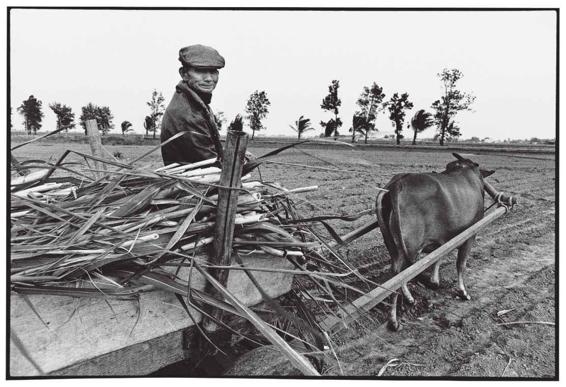 正发愁该往哪个方向继续旅程,只见远方一坨影子缓缓移动,料想是有些什么事。朝目标行去,靠近了才发觉,一位戴着鸭舌帽、打着围巾、身穿厚夹克的老翁驶着一头老牛车,沿途捡拾一亩亩园区里的弃置物。蔗叶、菜根、采收过的豆茎、树木剪下的枝桠、整修围篱换下的残木破竹都被他当成宝,整个田野被他捡得一干二净。