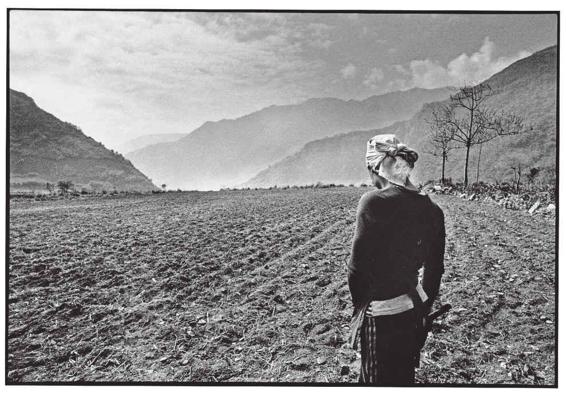 被重重峰岭环绕的这一大片山谷台地,竟只见一位农夫。这天的工作是在玉米田下种,不需多余人手,只身单影在辽阔的天地之间,显得既孤独又绝对。
