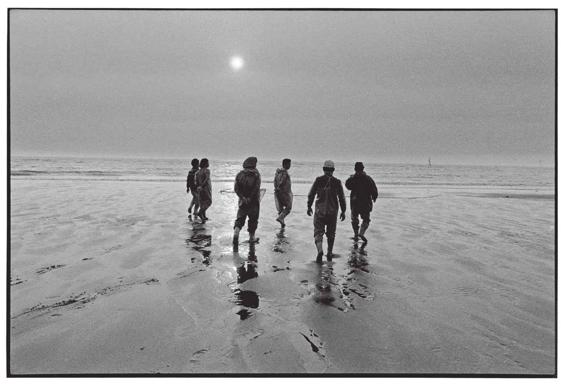 渔民行过的这片沙滩,现在已成了著名的观光湿地,附近四处林立着一架架巨大的风力发电机。天象、地貌、人事物都在变,唯有相机快门捕捉的刹那成为永恒。望着这六位渔民的背影,仿佛令人又回到诵着课文的童年。