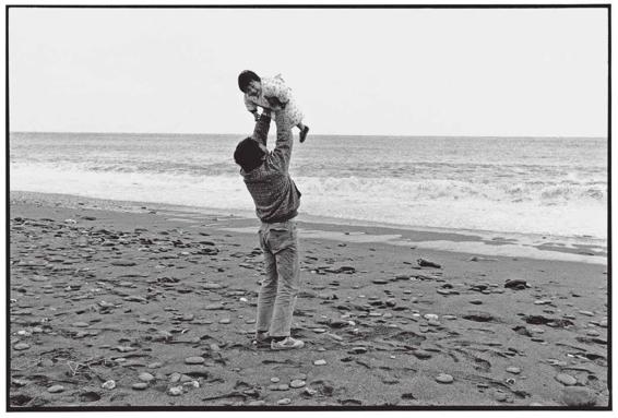 当我看到这位父亲将他的儿子高高举向天空时,我还真是羡慕这份亲情呢!海离我们镇上,骑自行车也不过是十来分钟的路程。但记忆所及,父母一次也没带我去过,也许是害怕有什么意外吧。当我捕捉到孩子从高处望向我的眼神时,忽然希望这是我童年的光景,只是被我粗心地忘掉了。这是任何父亲都曾有过的动作,或有过的愿望,把孩子高高举起,希望他长大后,一切都比老爸更好。
