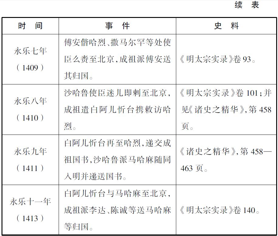 现将永乐初陈诚出使前中国与帖木儿帝国使节往来简要归纳如下: