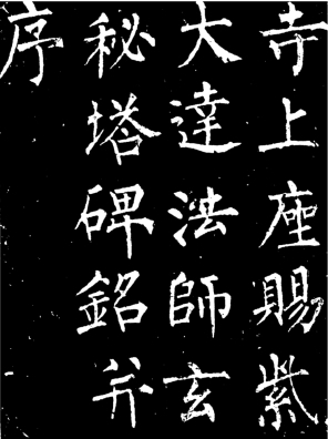 柳公权传世的作品并不多,主要有《金刚经》《冯宿碑》《李晟碑》《玄秘塔碑》《神策军碑》《高元裕碑》,墨迹《奉荣碑》《送梨帖题跋》《蒙诏帖》等。其中《玄秘塔碑》是他楷书成熟期的代表作品,用笔刚柔并济,结构严谨,中锋用笔,欲行先逆,笔势舒展而又遒劲,浑厚而又挺拔。