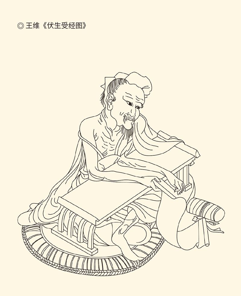 该图原为宋内府秘物,《宣和画谱》著录,南宋高宗题“王维写济南伏生”,钤“宣和中秘”印。绢本设色长卷,现藏日本大阪市立美术馆。