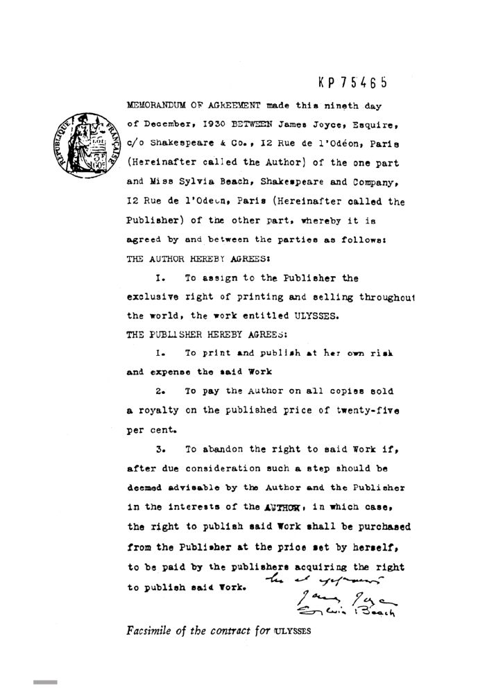 17﹥ 《尤利西斯》的出版合同
