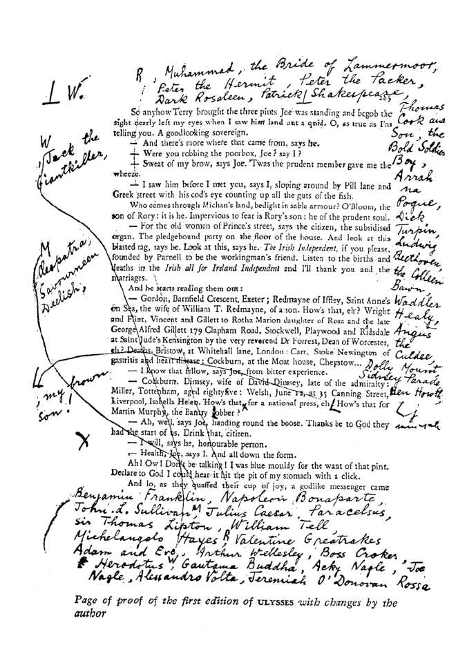 18﹥ 第一版《尤利西斯》乔伊斯修改的校对稿