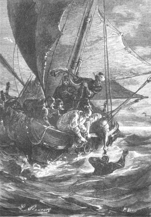 还有半英里多,船就进入了听觉所及的范围内,希望就在眼前。但是就怕那些渔民看到他们这些奇怪的家伙后会马上逃走。所以,必须尽量接近他们。