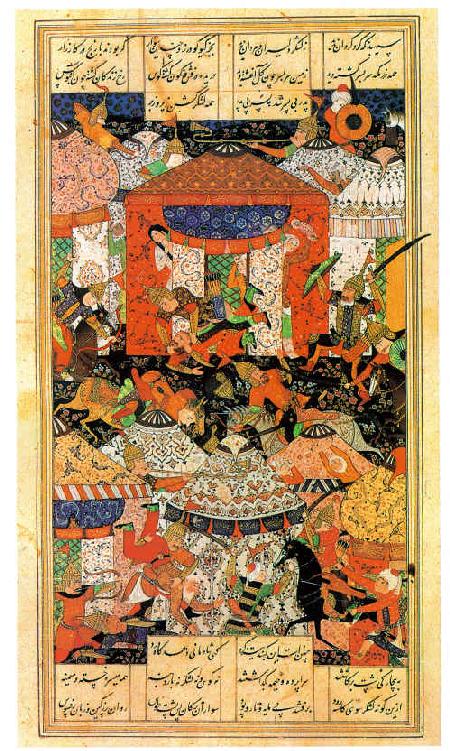 [5]在菲尔多西《列王记》中,伊朗军队与图兰军队在哈玛万山下展开激烈厮杀。图兰军队因得中国军队相助,连连获胜。伊军统帅图斯回伊朗搬救兵,伊朗国王凯·霍斯陆派鲁斯坦姆前往援助。鲁斯坦姆勇猛无敌,连斩数员图兰军队大将。其中图兰大将申古尔逃掉,并未死于鲁斯坦姆手下。图兰另一员大将阿什克布斯出阵挑战鲁斯坦姆,让鲁斯坦姆通报姓名,鲁斯坦姆答:“我名叫‘取尔性命’。”小说这里叙述的故事与《列王记》不完全相符。