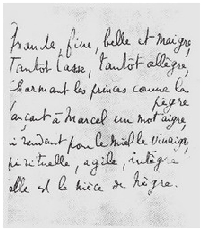 塞莱斯特·阿尔巴雷,普鲁斯特忠实的女佣人,身兼秘书、信使、管家、护士和厨师,服侍普鲁斯特直至去世。