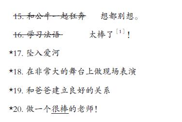我张大了嘴巴。“你一定是在开玩笑,”我对他抖着那张纸,“这是我二十年前写的!我愿意尊重妈妈的意愿,但这和实现这些目标丝毫没有关系。”