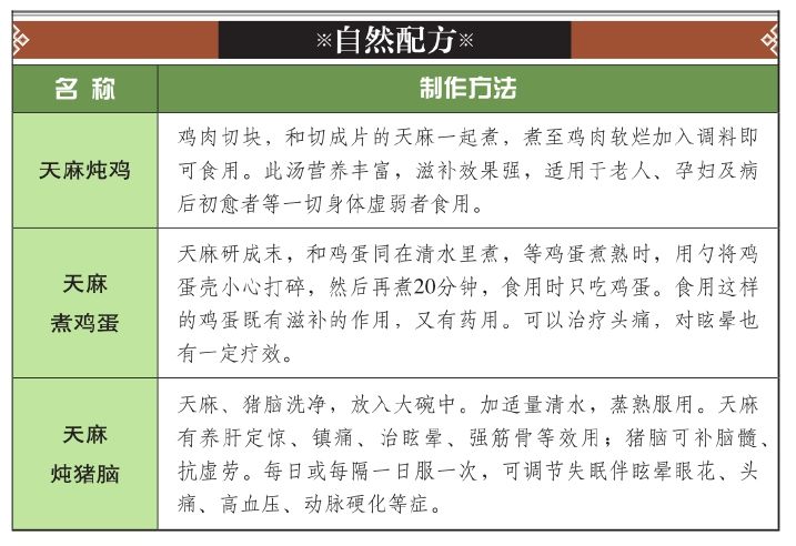 天麻可以治头晕目眩,有镇痛的作用,经常用于神经性头痛、神经衰弱、半身不遂、高血压等病的治疗。同时天麻还有一定的补脑明目作用。