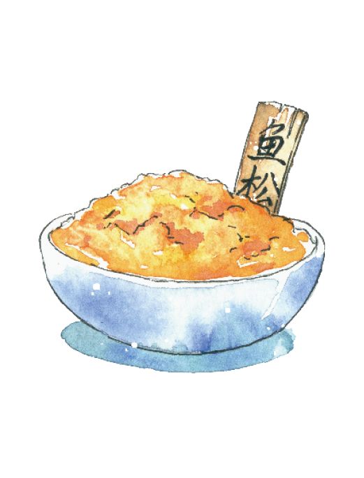 青鱼和草鱼蒸熟后,将鱼肉撕拆下来,放进油锅里炸,炸成黄色,加盐、葱、花椒、瓜和姜。冬天把鱼松封存在瓶子里,可以吃一个月。