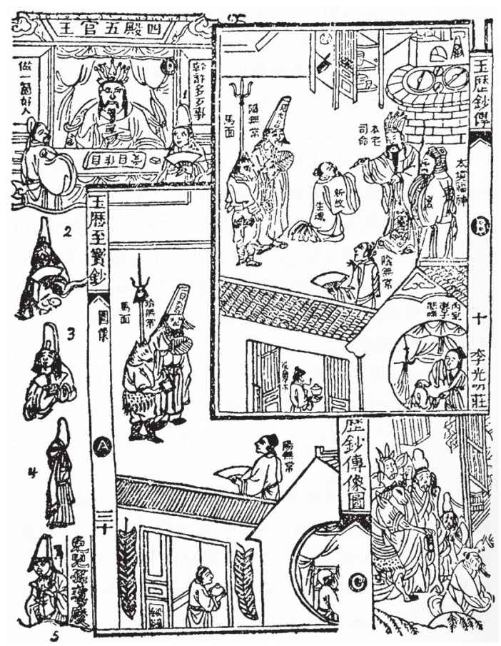 我所搜集的另一批,是内有“无常”的画像的书籍。一曰《玉历钞传警世》(或无下二字),一曰《玉历至宝钞》(或作编)。其实是两种都差不多的。关于搜集的事,我首先仍要感谢常维钧兄,他寄给我北京龙光斋本,又鉴光斋本;天津思过斋本,又石印局本;南京李光明庄本。其次是章矛尘兄,给我杭州玛瑙经房本,绍兴许广记本,最近石印本。又其次是我自己,得到广州宝经阁本,又翰元楼本。