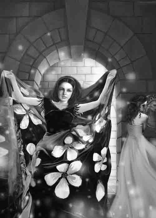 不知不觉中,天渐渐亮了。隔着库房的玻璃门,看得见庭院开始发白了,继而,窗户上半部、客厅的整个一面墙,也都相继明亮了。随着天光来临,那些身影也都重合、隐没了。时过不久,马杰特先生就看见只剩下两把小提琴,还滞留在角落里,但是阳光一照就化为乌有了。他还影影绰绰地看到,庭院里有一乘轿子的轮廓、一个缀着蓝宝石的扑了粉的脑袋,以及仆人丢在铺石路面的一支火把的最后亮光,而这时从敞开的大门隆隆驶进的一辆运输车,车轮在街石上辗出的火星,同火把的残余火星相交混了……