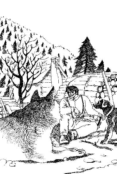 约翰•桑顿在去年十二月冻坏了脚,他的伙伴们为他安排舒适后,离他而去,让他恢复健康,而他们自己则坐上圆木做成的木筏,溯江而上,往道森去了。在营救巴克的时候,约翰•桑顿走路时脚还有些瘸,但是随着天气不断转暖,轻微的瘸脚就消失了。在悠长的春天日子里,巴克躺在河岸旁,眼睛注视着奔流的江水,耳朵懒散地听着鸟儿唱着歌,大自然哼着曲儿,它慢慢地恢复了体力。