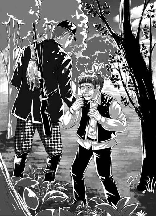 很久我没有找到任何野物。终于,从一大丛长满野蒿的橡树棵子中飞出一只秧鸡。我打了一枪,秧鸡在空中翻了个身,就掉下来。卡西扬听到枪声,急忙用手捂住眼睛,一动也不动,直到我装好枪,拾起秧鸡。等我继续往前走了,他才走到死秧鸡落下的地方,弯下身去,看着溅了几滴血的草地,摇了摇头,惊恐地朝我看了看……后来我听见他小声说:“罪过!……哎呀,这真是罪过!”