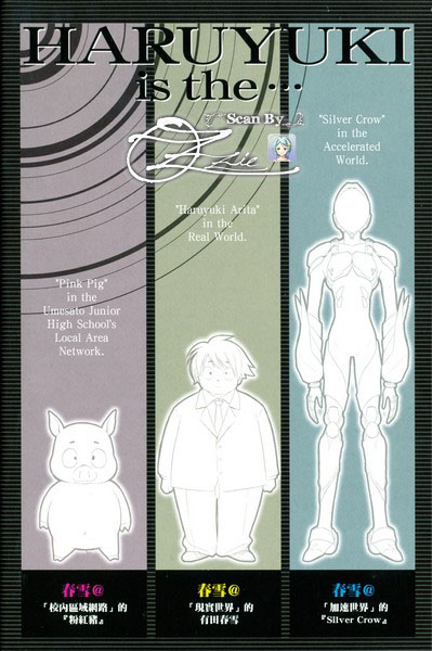 ■春雪=有田春雪。梅乡国中一年级生,体型略胖的他常遭人霸凌。擅长玩游戏,但个性内向。校内虚拟角色为『粉红猪』。
