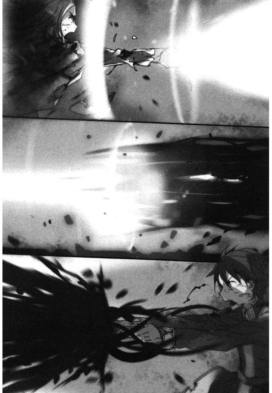 伴著「啪——」的一声连地板都为之震动的巨响,白色的光枪被撕裂成了无数细流,突破了之前的均衡再次向前突进的,是桐人的黑色巨树。