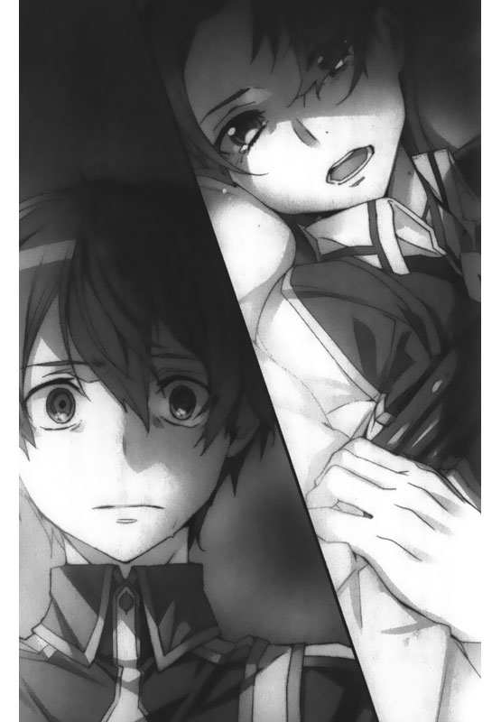 这表情像是在哪里见过似地。优吉欧一边拼命拖著无法动弹的腿脚向前迈进,一边用那近乎麻痺的头脑不断的思考。是的,那是在两年前於北之洞窟之中看到的哥布林的脸。是想要用蛮刀将优吉欧还有桐人切碎的暗之国居民的写照。