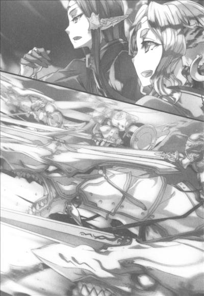 莉珐慌忙转头过去,进入眼帘的是——以密集队形通过敞开的大门,身着新绿色光泽铠甲的シルフ族战士的身影。