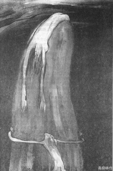 这人从石墙上落下来,昏沉沉,病恹恹。差不多一个手臂长的地方,地上有一个小小的凹洼,它积满了新近的雨水——一个清澈的小水塘。他爬向它,好使自己清醒过来,用颤抖的手撑起他的躯体,竖起他的头,看到他的脸的映像,就像在一面镜子里一样。他发出一声极为骇人的喊叫。这是他的手把他带过来的,他倒下了,脸朝下,落进池塘,放弃了投身另一个人生命上的生命。