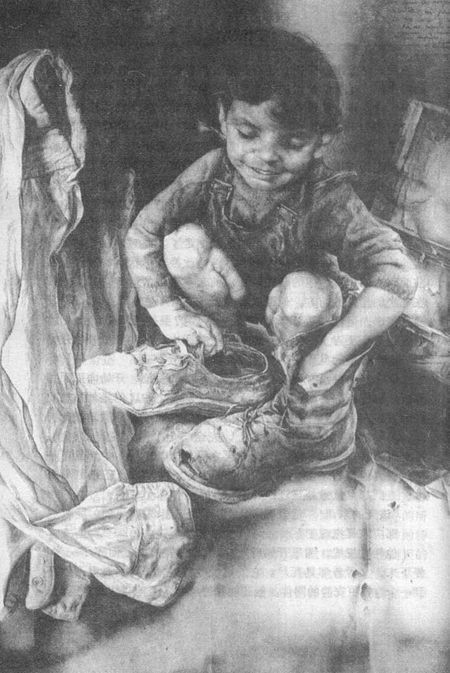接下来他开始忘记了上面所想的一切,但现在他的眼睛又开始注视着那具尸体。阴影已完全从那尸体上移开了。他看见了它清晰的轮廓,下巴,整张脸,在月光显得那么惨白。衣服呈显灰色,这种制服表明他是一位同盟军军人。外衣和背心都未扣好,每边就那样耷拉着,露出了白色的衬衣。胸部好像不自然地凸起着,但是腹部却陷下去了,下陷的肋骨使一些部分显得尤为突出。手臂是伸展着的。左膝往上挺着。整个姿势使拜瑞感到它好像有意识地让他在研究一种恐怖的东西。