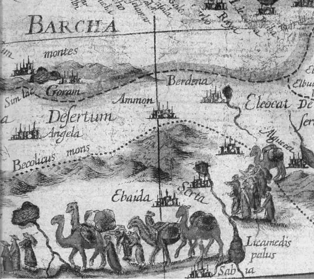 在棕榈树下,可以看到一口被磨损的石头围起的水源,而那些石头在烈日的烘烤下已经变得粉碎,似乎立刻就会化为难以察觉的尘埃。这里看不到任何湿润的迹象。博士的心痛苦地紧缩在一起,当他正要把自己的想法告诉同伴的时候,他们的惊叹引起了他的注意。