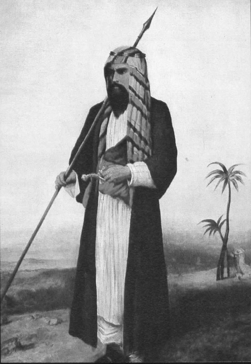 酋长独自站在那里一动不动。他握紧长枪,竖起枪筒,高傲而又镇静地等待着。博士在距他不足150英尺的半空停下来,然后以洪亮而优美的声音,用阿拉伯语向酋长表达尊敬的问候。