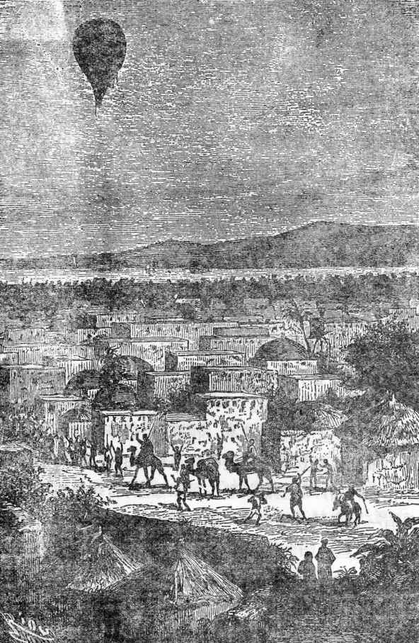最初,博士对气球前进的方向稍稍感到有些恼火,但是当他看到库卡——博尔努著名的首府时,他再也不抱怨了。他观察了片刻,只见这座城市的城墙上涂有白色的粘土,几座建筑粗糙的清真寺笨拙地耸立在密集的阿拉伯屋顶上空,而那些房屋好像游戏的骰子。这就是大部分阿拉伯城镇的模样。在一些家庭的院落以及一些公共广场,生长着一些棕榈树和橡胶树,那些橡胶树的树冠直径达100英尺。乔请他的同伴们注意,事实上这些巨型阳伞的大小和阳光的强烈程度有关,因此,他更加得出了上帝可爱的结论。