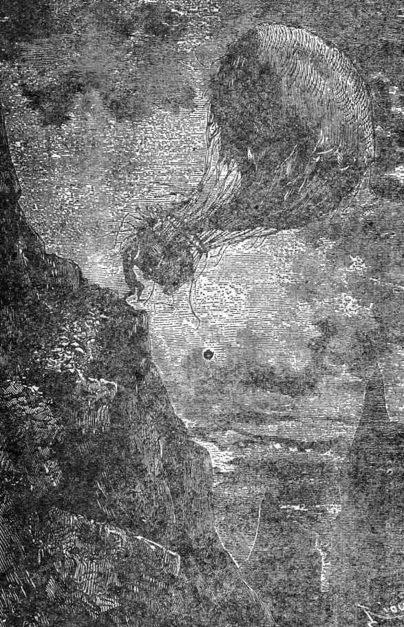 “在十分钟之内,”博士自言自语着,“如果我们不能超过它,吊篮就会撞在岩石上!”