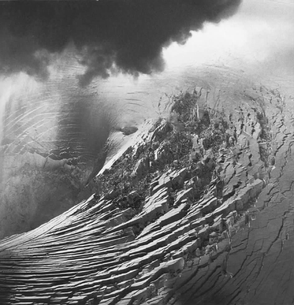 汉斯认为我们在火山锥附近过夜很危险,因此我们继续绕来绕去地向上攀登着。用了大约五个小时,我们攀上了最后的1500英尺。由于山路弯弯曲曲,我们至少走了9英里。由于饥寒交迫,我已经再也支撑不住了,稀薄的空气使我感到呼吸困难。