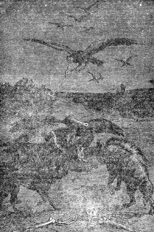 经过那些可怕的屠杀之后,被毁坏的田野一片荒芜,被烧毁的村庄空空荡荡,荒无人烟,河流上漂浮着死尸,猛兽四处横行。
