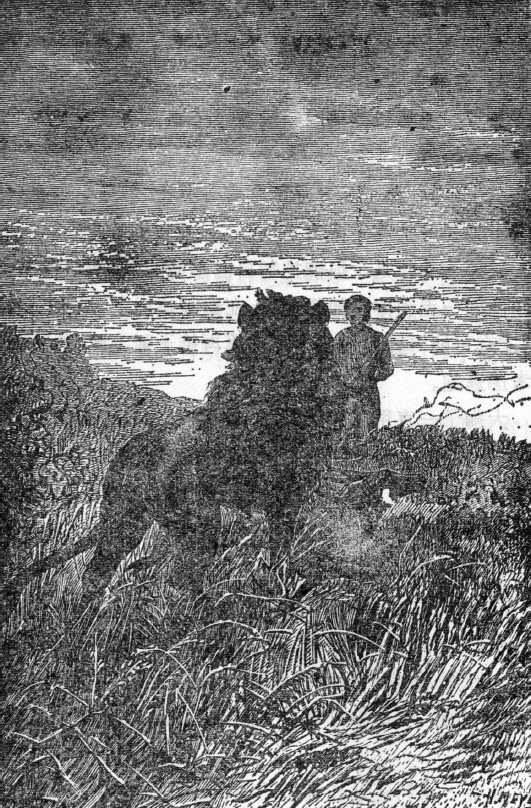 7月9日,迪克·桑德经受了一次极为严峻的考验。当时,他独自一人上了岸,举枪瞄准了一头长角露出灌木丛的驼鹿。他刚开了一枪,突然在离他30米远的地方窜出一头可怕的猛兽。无疑,这头巨兽也一直盯着这只驼鹿,因此这时跳出来抢夺迪克的猎物,而且不会轻易放弃。