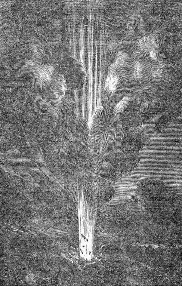 瞬间便是轰隆的一声巨响,恐怖极了,地球上就没有过这种声音,雷声也好,火山也好,声音都远没这么巨大!动静之大不是语言能描述清楚的。就像从火山口喷出了一团巨型火球,把地球的内脏吐了个干净。地球重重地颠了一下。那些来看热闹的人,只有为数不多的几个看到炮弹一闪便在浓烟烈火中胜利地钻到天上去了。