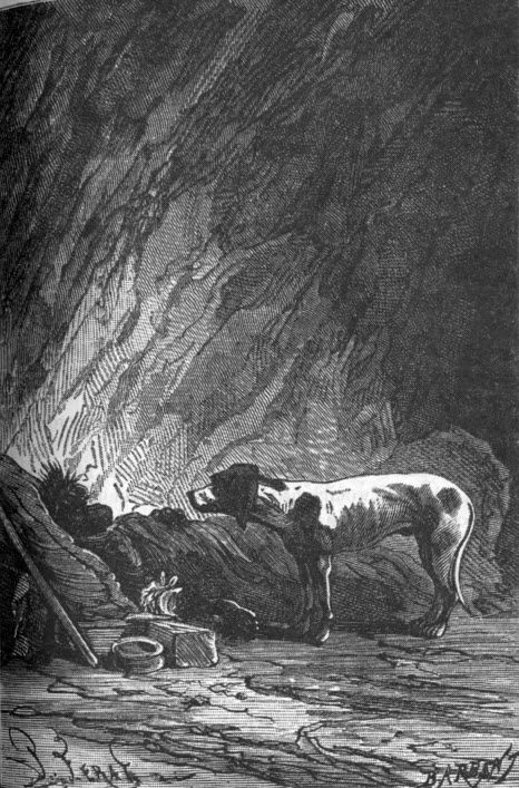 纳布和潘克洛夫把不时低低呻吟的杰普放进了升降梯。他们把它慢慢升回到“花岗石宫”,让它躺到了从床上拿下的一个垫子上,小心地洗干净它全身的伤痕。杰普并没有受到致命伤,只是流血过多导致身体虚弱,创口被包好之后它就开始发烧。他们按照严格规定给杰普供应饮食,如纳布所说的,“完全要像一个真正的人那样。”他们从药草箱里取出药泡成清凉的饮料喂给杰普。最初很不安静的杰普一会儿就恢复了正常呼吸,安安稳稳地睡熟了。托普经常蹑手蹑脚地探望它的朋友,大家的看护让它很满意。它非常关怀地舔着杰普露在床铺外边的手。