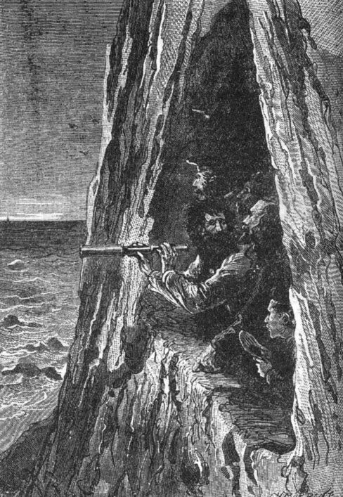 “朋友们,不要惊慌,”赛勒斯·史密斯说,“或许这只船只是到沿岸来巡视一下,可能船上的人根本不想登岸。但无论如何,我们都得尽量隐蔽起来。眺望岗上的风磨过于显眼,艾尔通和纳布需要赶快去落下风翼。我们要用树枝密密遮住‘花岗石宫’的窗户,还要把火都熄灭,不让海岛暴露出任何有人居住的痕迹。”