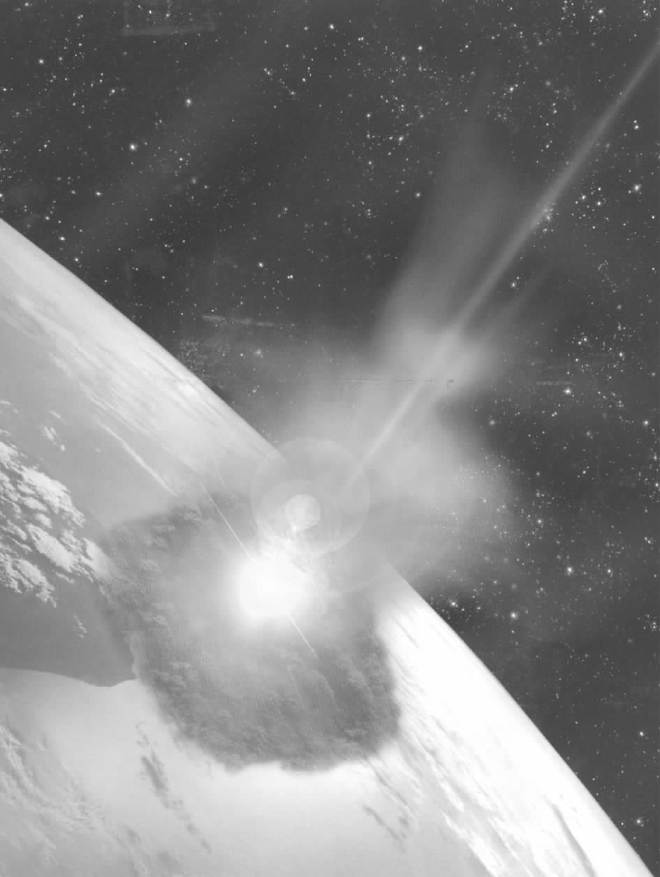 因此,如果彗星只是由云雾状物质构成,就算它们与地球相遇,那也不会发生什么危险。如果彗星是由坚硬的物质构成,那么碰撞后将会如何呢?