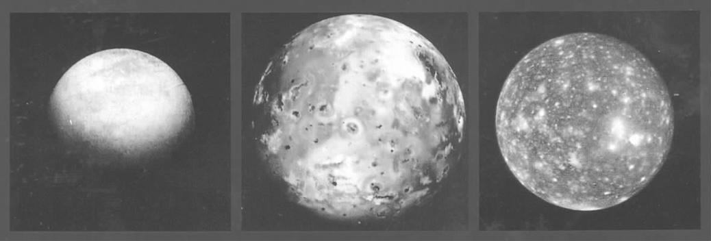 木星的一颗卫星同木星的距离同月亮与地球的距离相等,另有一颗卫星体积要小于月亮,但与月亮相比,这四颗卫星绕木星转行的周期都要短一些:第一颗是一天十八小时二十八分,第二颗是三天十三小时十四分,第三颗是七天三小时四十三分,第四颗是十六天十六小时三十二分,其中最远的一颗卫星同木星的距离为1860520公里。