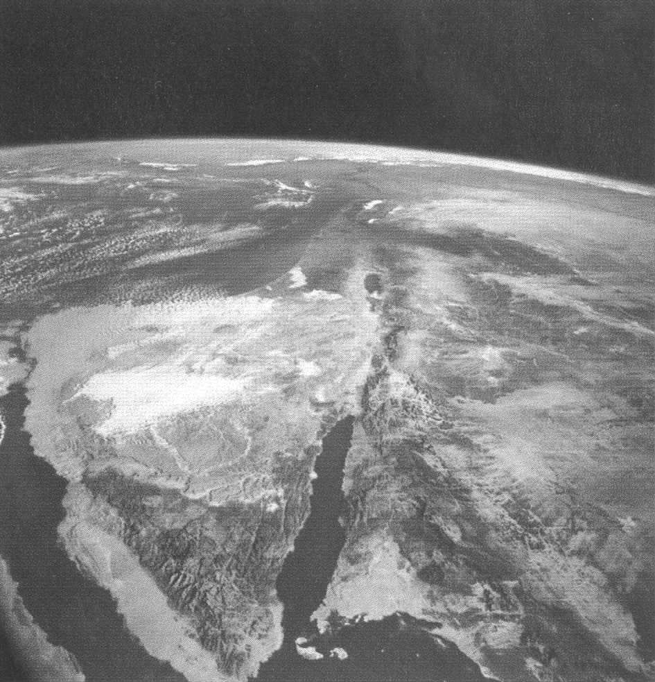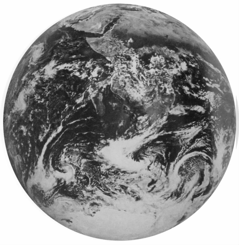 地球的圆轮越来越近,已经不能同时看到两极了,而且距离仍在迅速缩短。渐渐地,地球上的斑点已经一览无余,那些斑点明亮的是陆地,光线暗淡的是海洋,因为海水没有把阳光反射出来。在地球的上空,能够看见一条条白色的带子,甚至连带子下面的阴影都清晰可见,那正是在地球的大气层飘浮的云朵。