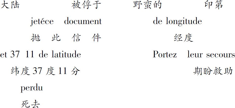 “好的,咱们继续推测。两名水手及船长land(登陆),在哪儿登陆呢?contin就是continent(大陆)的意思。请大家注意,是在大陆登陆,不是在海岛上。然后,他们又怎么样了呢?感谢上帝,这里的两个字母‘pr’给我们提供了线索,晴示了他们后来的命运。‘pr’应该是prisoners(被囚者)的意思,接下来的两个字cruel Indian(野蛮的印第安人)很清楚地表示了其含意。这几个人极不走运,被那些野蛮的印第安人掳劫走了,成了他们的阶下囚。你们觉得我这种解读如何?这几个字所表达的意思是不是这样?空白之处的字跃然纸上,现在这封信的意思不是一清二楚了吗?这样的解释应该是行得通的,你们脑子里还存有什么疑问吗?”