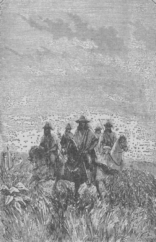 他们在相距约百码的地方停住了,你喊我叫,手舞足蹈,仿佛在商量什么。哥尼纳凡走向他们,但是还没有走几码远,那群土著人便勒马掉头,一溜烟消失得无影无踪。爵士那疲乏的马绝对是追不上的。