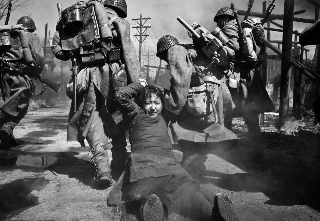 日本兵甲接过通行证,用电筒仔细查看,又把手电筒直直地照在孟繁明的脸上。