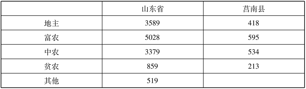1944—1945年山东斗争运动主要涉及的人数约有1.3万人。针对如此多问题的运动势必要打破阶级的界限。很多中农被划入“斗争对象”。这些人的阶级背景如下:[71]