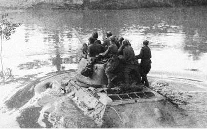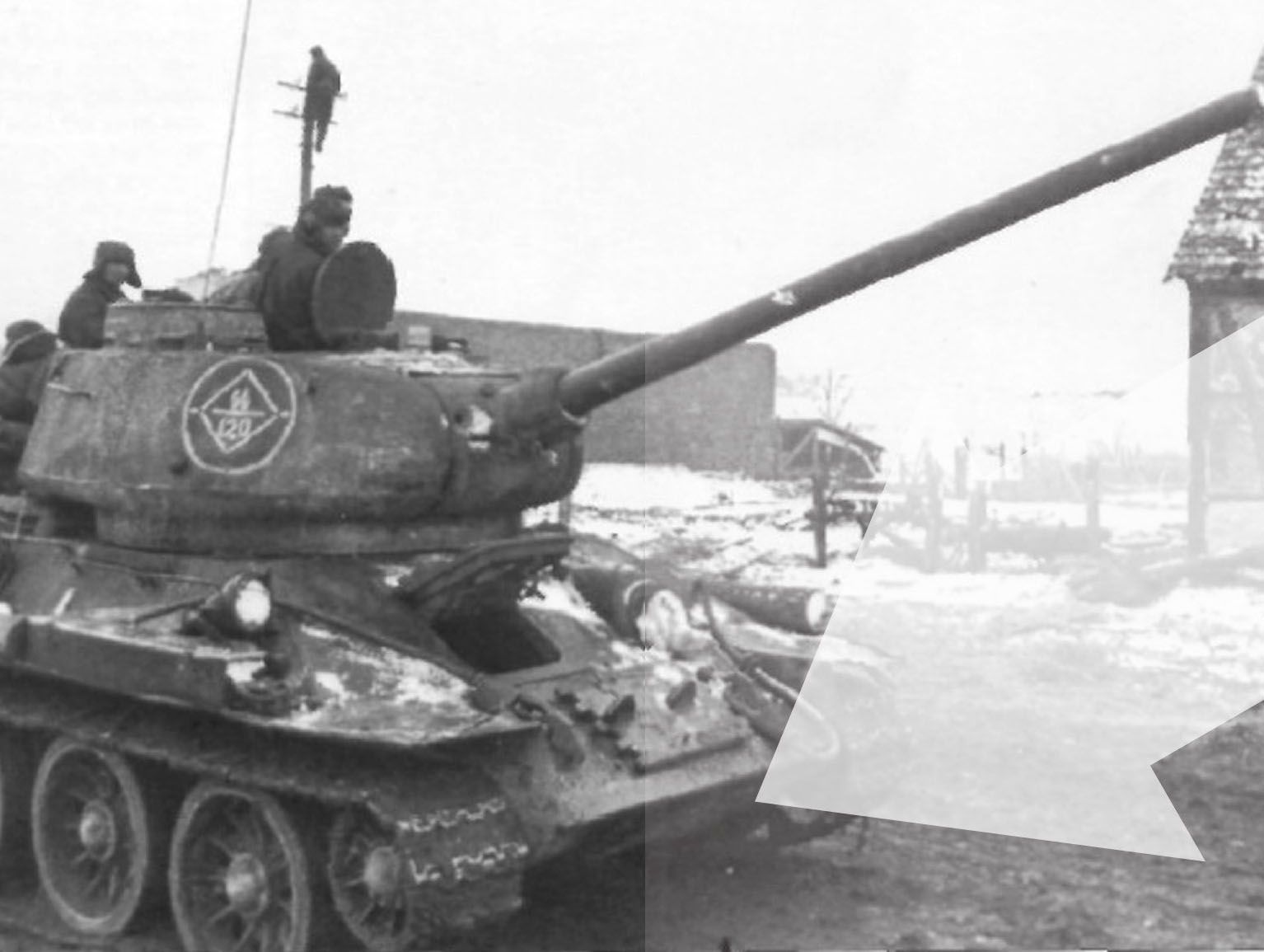 苏军第1近卫坦克集团军第11近卫坦克军第44近卫坦克旅的T-34∕85中型坦克正在渡河。这时,苏军大批的T-34坦克和“斯大林”式重型坦克快速前进,所有的坦克身上都有大幅的标语。下午2点,他们突破了德军的防线,没有遇到丝毫抵抗。坦克的装甲被大雪覆盖,这倒成了最好的保护色。当坦克行进在广阔的冰原上时,坦克上的冰雪让它们与大地融为一体。第3、第4近卫坦克集团军的主要目的是西里西亚的工业区。科涅夫在得到斯大林的作战命令时,清楚地看到他的手指在这一区域的地图上来回画着。当时的斯大林只说了一个词“金子”。斯大林的目标只有一个,那就是完好无损的德国矿井和工厂。