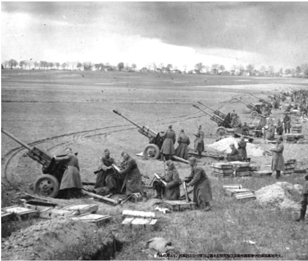 1945年4月,苏军的ZiS-3型76.2毫米反坦克炮正准备向德军据守的泽洛高地开火。科涅夫快速推进