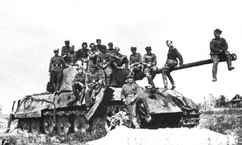 4月的最后一个星期,广阔的森林中战斗仍在持续。此时,已经没有前线可言了,最常出现的便是苏德两军殊死的遭遇战。德军坦克行驶的时候,会突然遭遇苏军坦克,它沿着防火带向德军坦克开火。德军坦克的炮口来不及转向,在它的后面还紧跟着半履带式装甲车。这些车辆拉着筋疲力尽的德军士兵,有一些士兵甚至趴在车辆的外面。面对苏军坦克的突然进攻,慌乱的德国人试图反击。坦克手想旋转炮塔,而坐在外面的士兵不得不从上面跳下来。苏军坦克的速度比德军快得多,还不等炮塔转向,苏军坦克发射的1枚炮弹就击中了后面的1辆半履带式装甲车,立刻发生爆炸。一团巨大的火球冲天而起,火光照亮了整个森林,周围的松树随即燃烧起来,滚滚浓烟掠过森林上空。