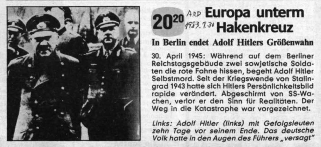 《纳粹卐字下的欧洲》最后一集:“在柏林,希特勒的疯狂结束了。”(In Berlin endet Adolf Hitlers Größenwahn)