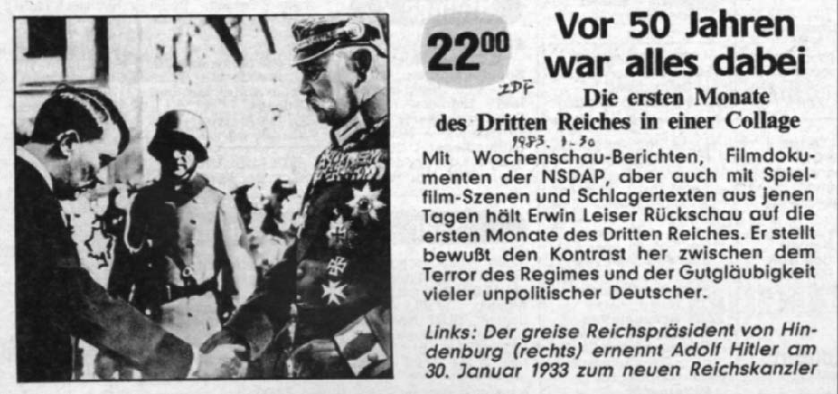 德国电视一台1983年4月7日播出的节目《为什么你们追随了希特勒》