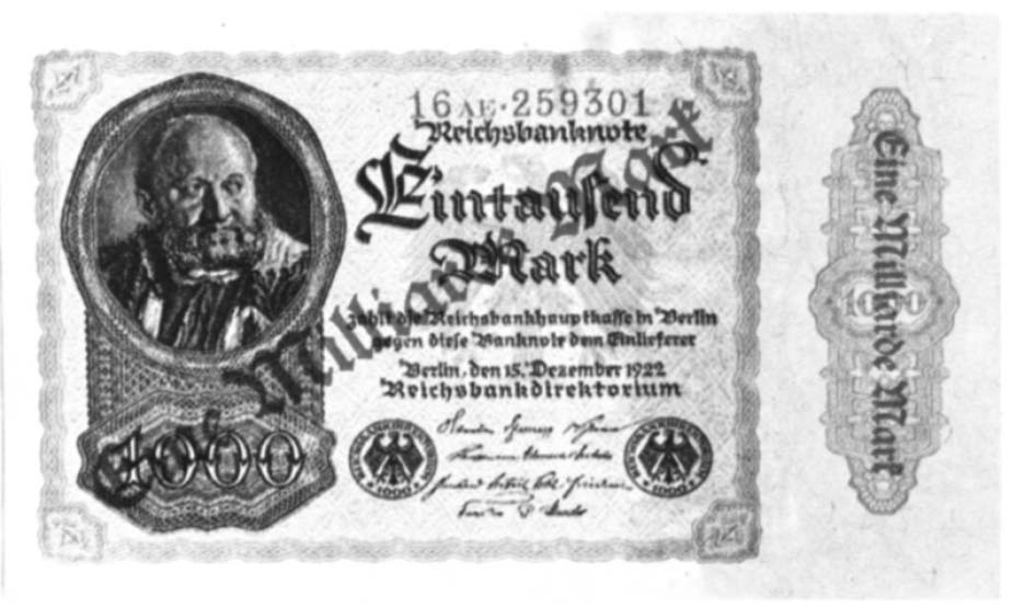 面值骤升100万倍的10亿马克大钞(德国中学历史教科书插图)