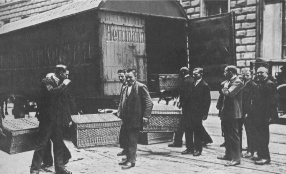 人们已经不能用钱包带钱了,图为德国人用洗衣筐搬运钞票(德国中学历史教科书插图)